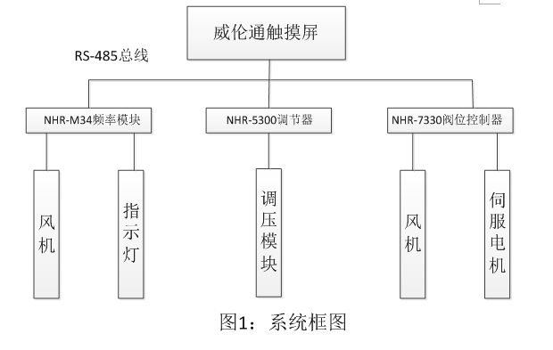威倫通觸摸屏可實現(xiàn)系統(tǒng)的集中管理和分散控制,方便領導層的管理工作,它和NHR系列儀表之間采用RS-485通訊,具有信號傳輸距離遠,抗干擾能力強,穩(wěn)定性高等特點。威倫通觸摸屏控制畫面如圖2所示。