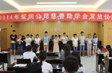 2014年8月22日,虹潤公司一年一度的“圓夢助學行動”捐資助學儀式在虹潤科技園辦公大樓四樓禮堂隆重舉行。順昌縣委副書記易才卿、順昌縣關工委主任黃春娣、順昌縣政協(xié)副主席黃為雄、順昌縣文體局局長李元生、團縣委書記吳詩源、順昌縣工會副主席蘭榮妹、虹潤公司董事長林善平以及相關部門領導出席了儀式。