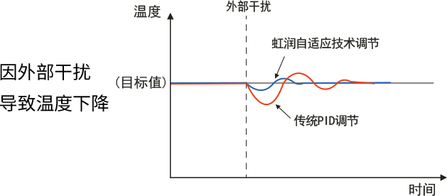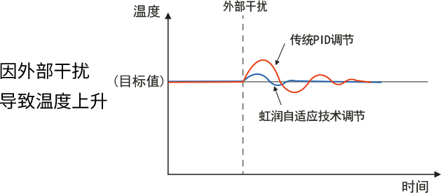 虹潤自適應(yīng)技術(shù)自動抑制常規(guī)干擾引起的溫度波動,針對開關(guān)艙室門時外部空氣的流入等可預(yù)測的溫度波動,穩(wěn)定地進(jìn)行自動控制。提高品質(zhì),縮短溫度變化穩(wěn)定所需的時間,且將溫度波動控制在較小限度,為提高生產(chǎn)能力做出貢獻(xiàn)。