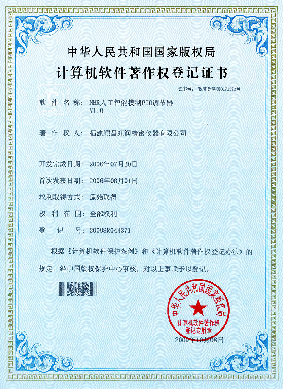 虹潤于2015年推出人工智能算法的溫控器。經(jīng)過長時間現(xiàn)場使用,溫控器無需人工整定參數(shù),無超調(diào)、欠調(diào),控溫精度高,基本達(dá)±0.1℃,得到用戶一致好評??刂扑惴ǐ@4項發(fā)明專利,主持起草2項國家標(biāo)準(zhǔn),獲得6項軟件著作權(quán)。