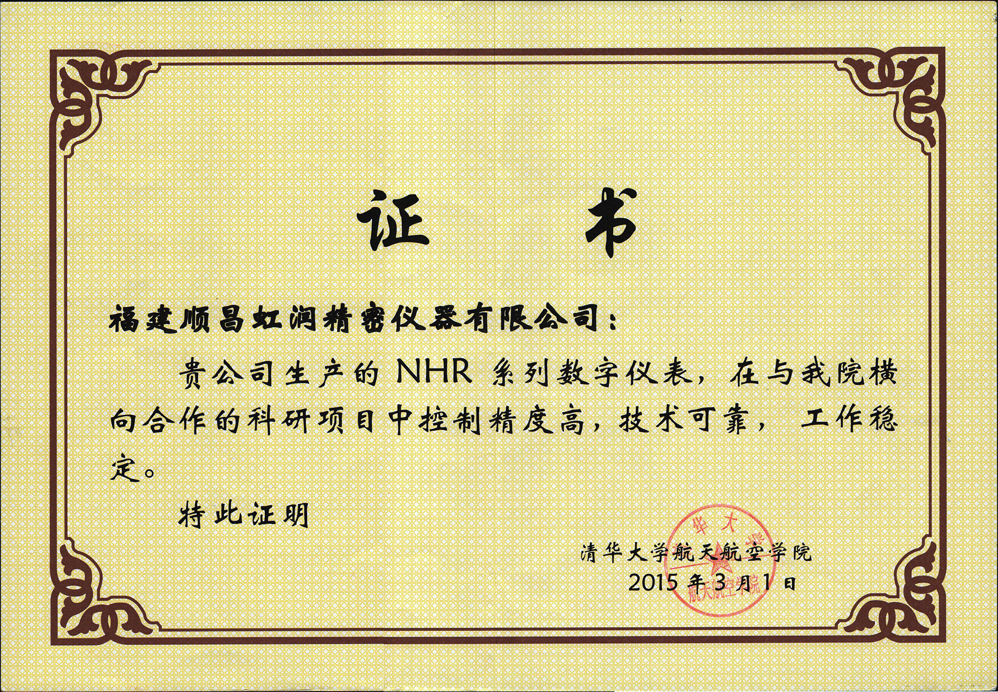 近日,由虹潤公司生產(chǎn)的自動化顯示控制儀表產(chǎn)品,成功應(yīng)用于清華大學(xué)航空航天學(xué)院橫向合作科研項(xiàng)目,因控制精準(zhǔn),抗干擾性強(qiáng),運(yùn)行穩(wěn)定,受到了清華大學(xué)航空航天學(xué)院科研項(xiàng)目組的廣泛好評,并向虹潤公司頒發(fā)了證書。
