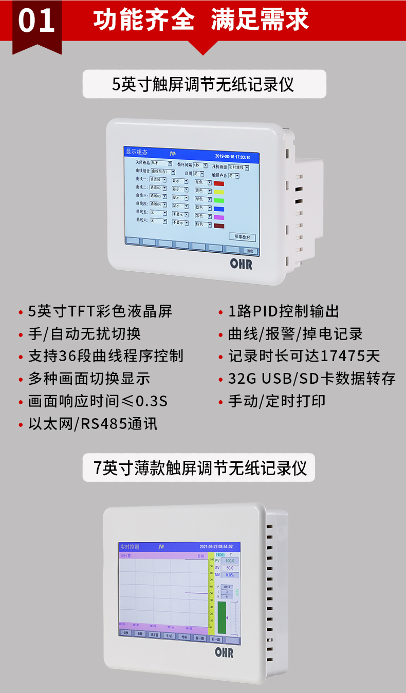 OHR-T系列觸摸屏調(diào)節(jié)無(wú)紙記錄儀