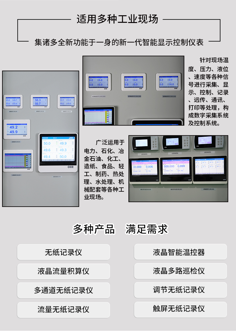 虹潤(rùn)公司是專業(yè)生產(chǎn)無(wú)紙記錄儀的國(guó)家專精特新“小巨人”企業(yè)。生產(chǎn)的觸摸屏調(diào)節(jié)無(wú)紙記錄儀,具有觸摸大屏顯示,真正人工智能算式,無(wú)需人工整定參數(shù),控制精度達(dá)士0.1°C,數(shù)據(jù)記錄與轉(zhuǎn)存, RS485/以太網(wǎng)通訊,5/7/9英寸可選等特點(diǎn)。產(chǎn)品獲得智能化控制器、人工智能調(diào)節(jié)器及調(diào)節(jié)方法、模糊PID控制儀及控制方法、平板無(wú)紙記錄儀、巡回檢測(cè)顯示方法及裝置等5項(xiàng)國(guó)家發(fā)明專利,主持起草物聯(lián)網(wǎng)智能記錄儀表通用技術(shù)條件、物聯(lián)網(wǎng)智能溫度儀表通用技術(shù)條件、工業(yè)過(guò)程測(cè)量和控制系統(tǒng)用智能調(diào)節(jié)器等3項(xiàng)國(guó)家標(biāo)準(zhǔn),通信系統(tǒng)多通道數(shù)據(jù)采集控制終端規(guī)范軍用標(biāo)準(zhǔn),以及空間數(shù)據(jù)與信息數(shù)據(jù)傳輸系統(tǒng)等2項(xiàng)航天標(biāo)準(zhǔn),參與國(guó)際5G標(biāo)準(zhǔn)制定,取得觸摸屏彩色調(diào)節(jié)無(wú)紙記錄儀等3項(xiàng)相關(guān)軟件著作權(quán)。產(chǎn)品廣泛應(yīng)用于電力、石化、冶金、化工、食品、制藥、熱處理、水處理、機(jī)械配套等諸多領(lǐng)域。