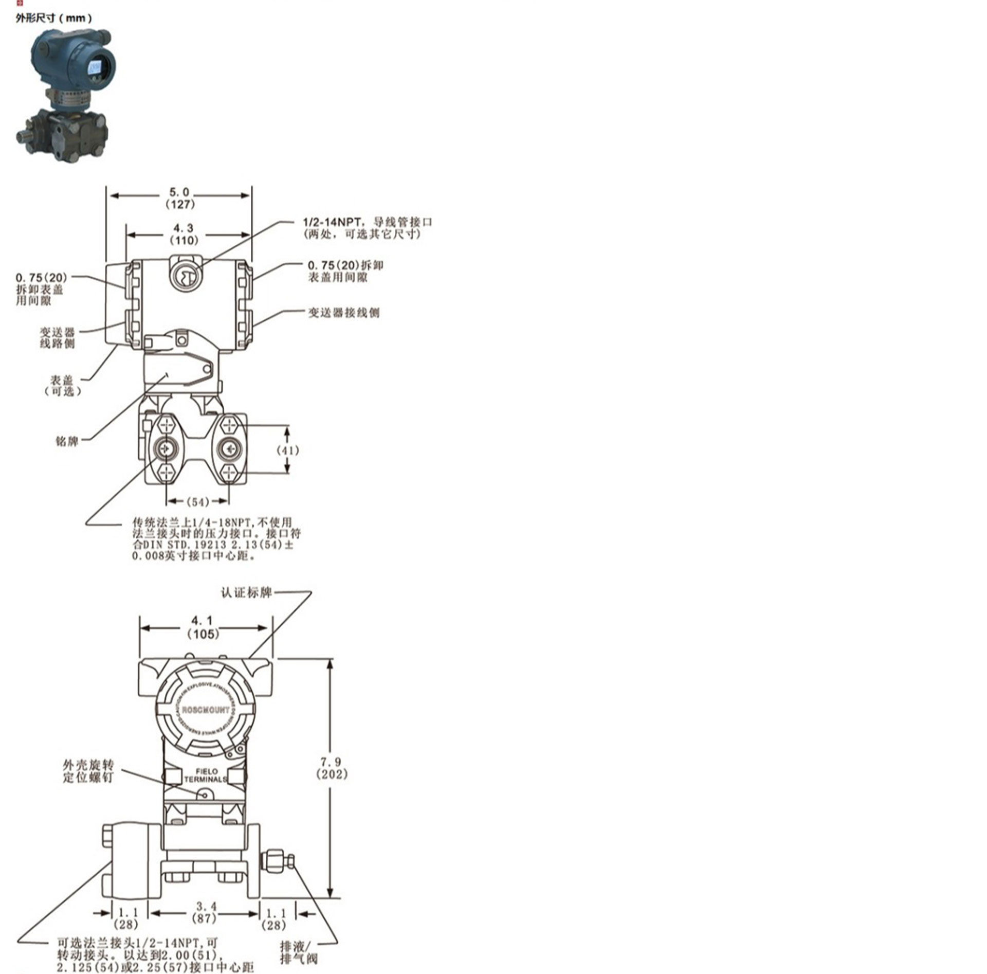 HR-3051AP型絕對壓力變送器的δ室(見下圖)一側(cè)接受被測絕對壓力信號,另一側(cè)被封閉成高真空基準(zhǔn)室,然后將其轉(zhuǎn)換成4~20mA.DC信號輸出。它可以測量除氣系統(tǒng)、蒸餾塔、蒸發(fā)器和結(jié)晶器等的絕對壓力。