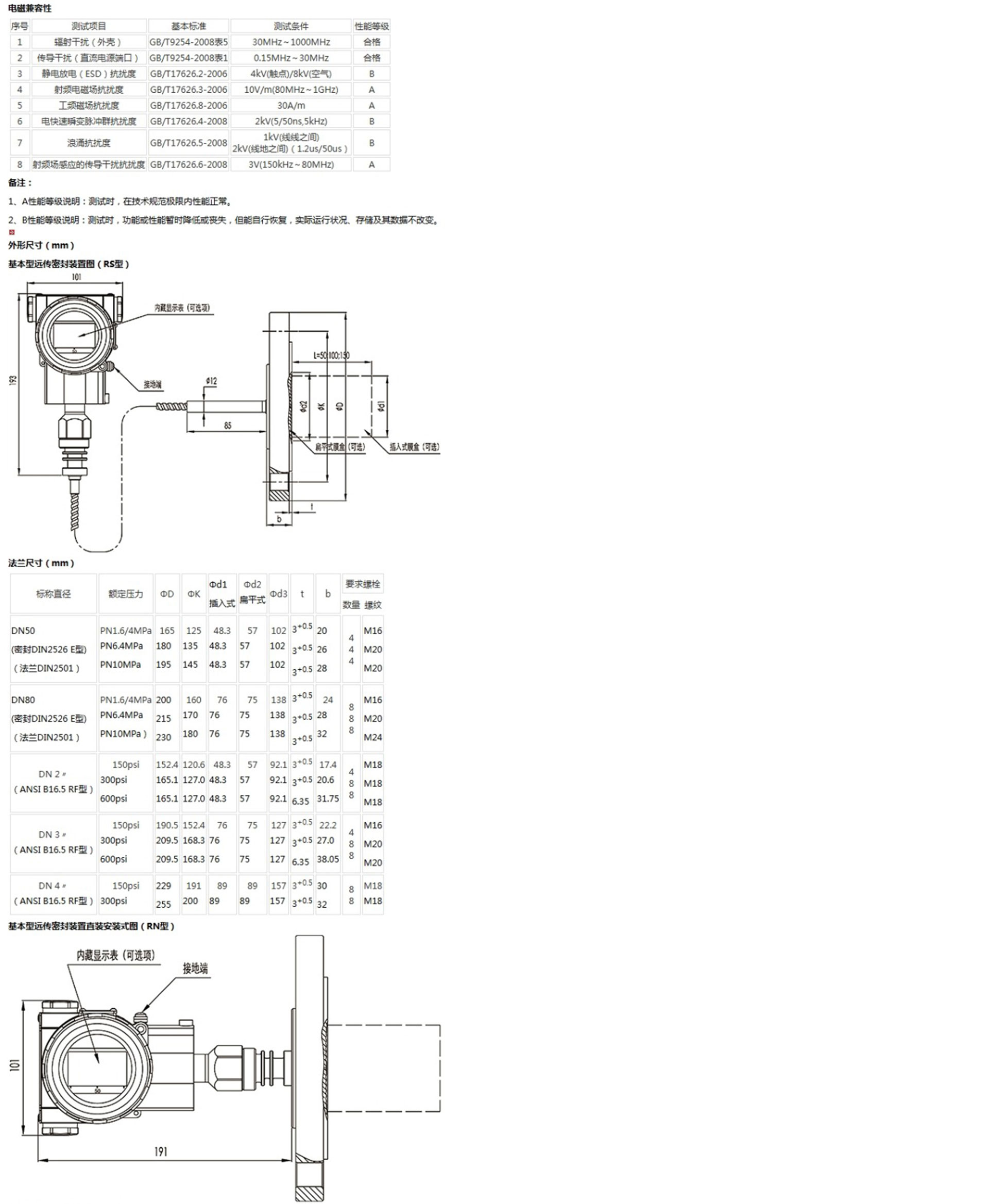 該產品用于測量液體、氣體或蒸汽的液位、密度、壓力,將其轉變成4~20mA (HART)電流輸出信號,可通過RST375手持終端對它們進行參數設定、過程監(jiān)控等。測量范圍(未遷移時)為0-6kPa~25MPa,液位法蘭的額定壓力分別為:1.6/4MPa、6.4MPa、10MPa、150psi、300psi或600psi。