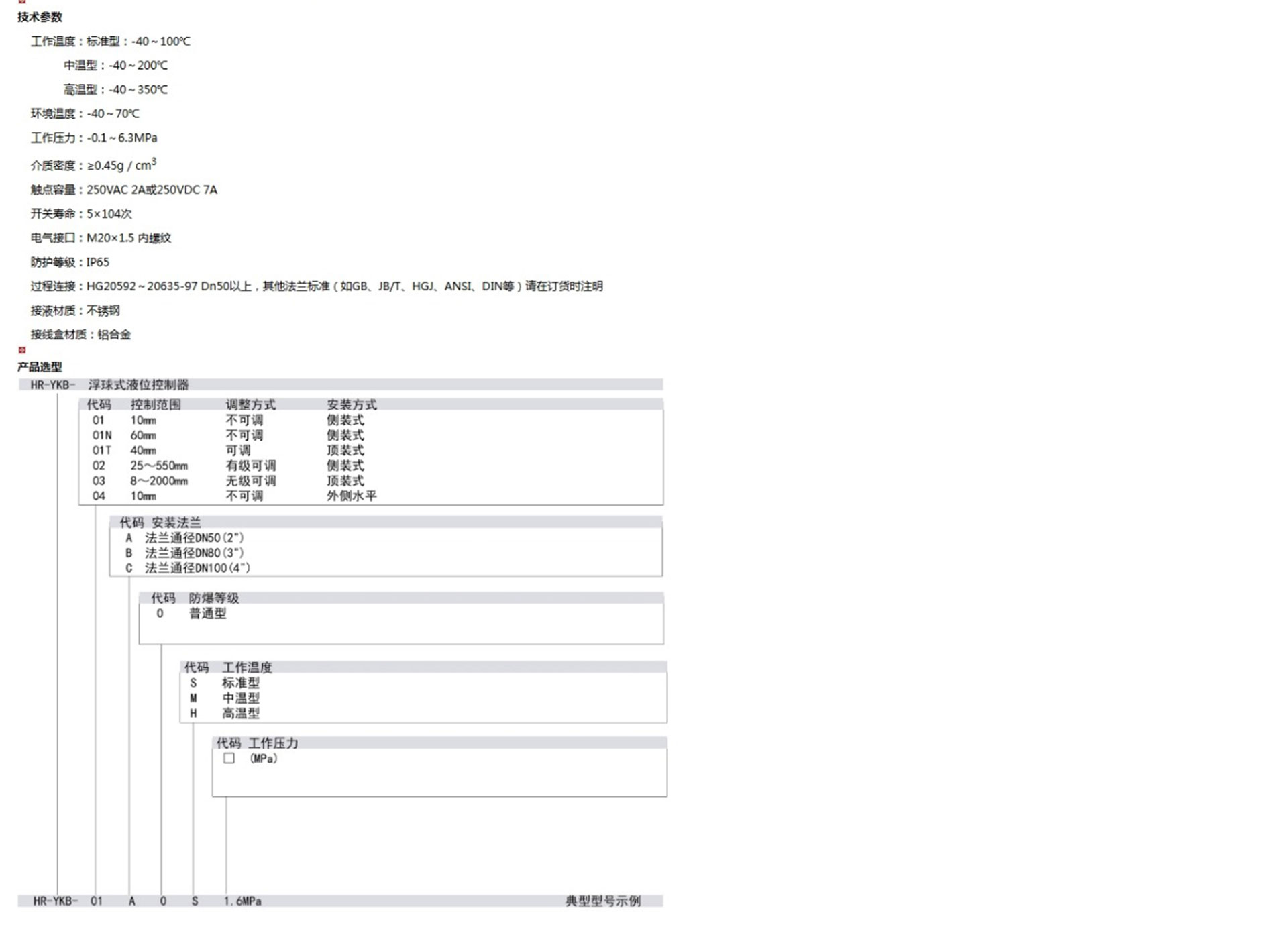 HR-YKB系列浮球式液位控制器,廣泛適用于石油、化工、電力、冶金、食品、制藥、造紙等行業(yè),能實現對各類容器內液位的自動報警或控制。